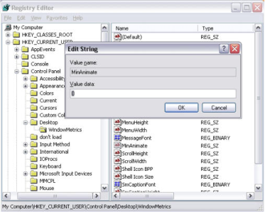 contents in the right pane. Look for "MinAnimate", double-click it and set the