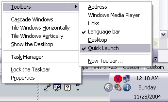 The Quick Launch Toolbar allows you to start frequently used programs without