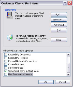 24. Turn off personalized menus on your Start Menu and in all your MS Office Programs.